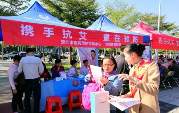 深圳11月27日电(郑小红 石磊)第29个“世界艾滋病日”到来之际,以“携手抗艾,重在预防”为主题的预防艾滋病大型公益活动,27日下午在深圳中心书城北广场举行。