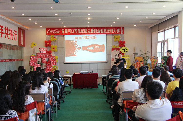 然后,大家观摩了首届可口可乐“校园先锋”创业•创意营销大赛开幕式。本次大赛由吉林省青少年发展基金会主办,由可口可乐(吉林)饮料有限公司协办,由各高校学生组织、摩尔公司承办。