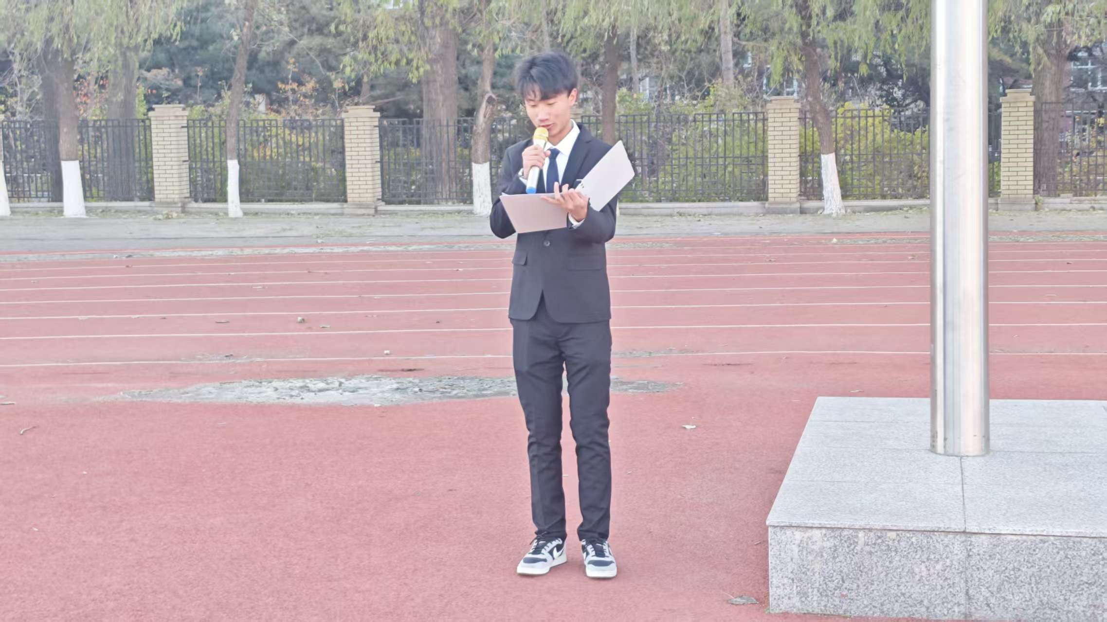 随后,新能2542班于双硕同学发表国旗下演讲,他号召同学们锤炼本领、勇于担当,新时代青年要以党的二十大精神为指引,坚定理想信念,勇担时代重任,为实现中华民族伟大复兴贡献力量。铿锵有力的话语引发了在场师生的强烈共鸣。